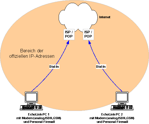 Bei jedem Dial-In ins Internet bei einem beliebigen Internet-Provider (ISP) wird für jede einwählende Station eine separate offizielle IP-Adresse zugeteilt. Der Zugang kann über ein analoges Modem, ein ISDN-Modem oder ein GSM-Modem erfolgen. Diese Art der Internet-Verbindung kann allerdings sehr teuer werden, wenn man pro Zeiteinheit oder Datenmenge bezahlen muss.