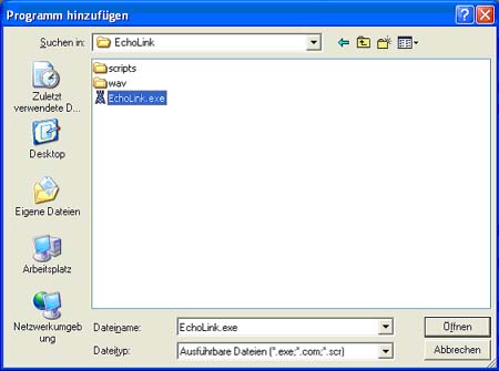 \Programme\K1RFD\EchoLink), EchoLink.exe auswählen