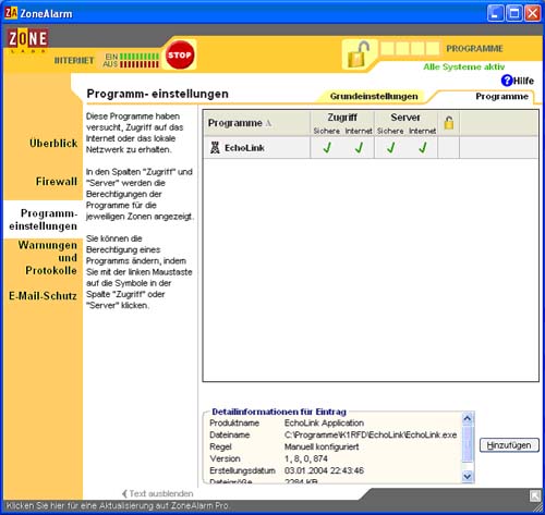 - Nun für das Programm "EchoLink"