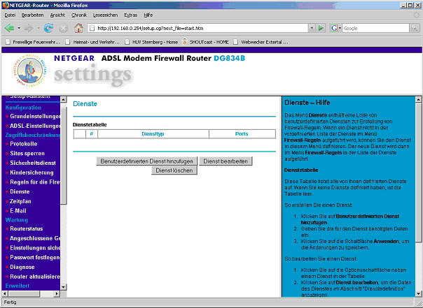 Die Konfiguration ist im Menü unter Zugriffsbeschränkungen, Dienste