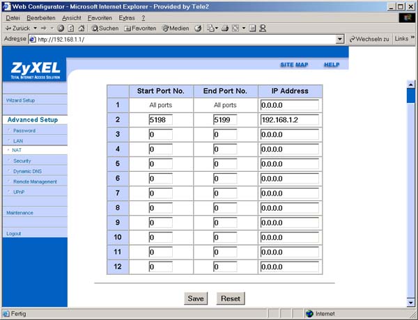 Das Prestige 650-ME bietet, im Gegensatz zum 642-ME, gute Einstellungsmöglichkeiten für das "Port Forwarding".