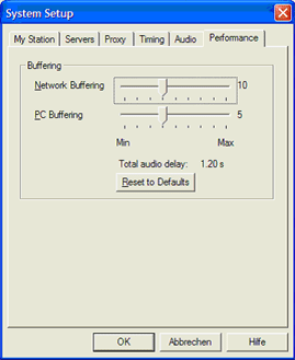 Reset to Defaults: Stellt die beiden Regler "Network Buffering" und "PC Buffering" auf die Grundeinstellung zurück.